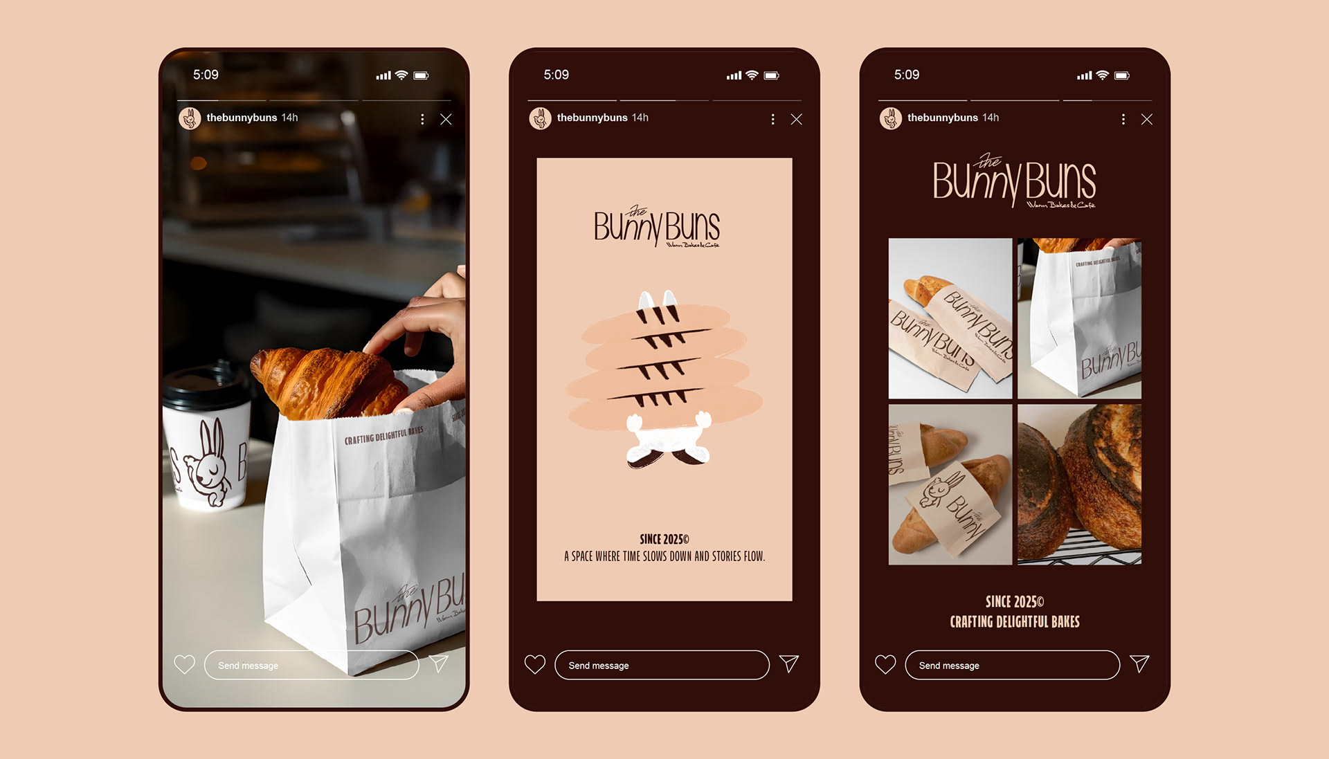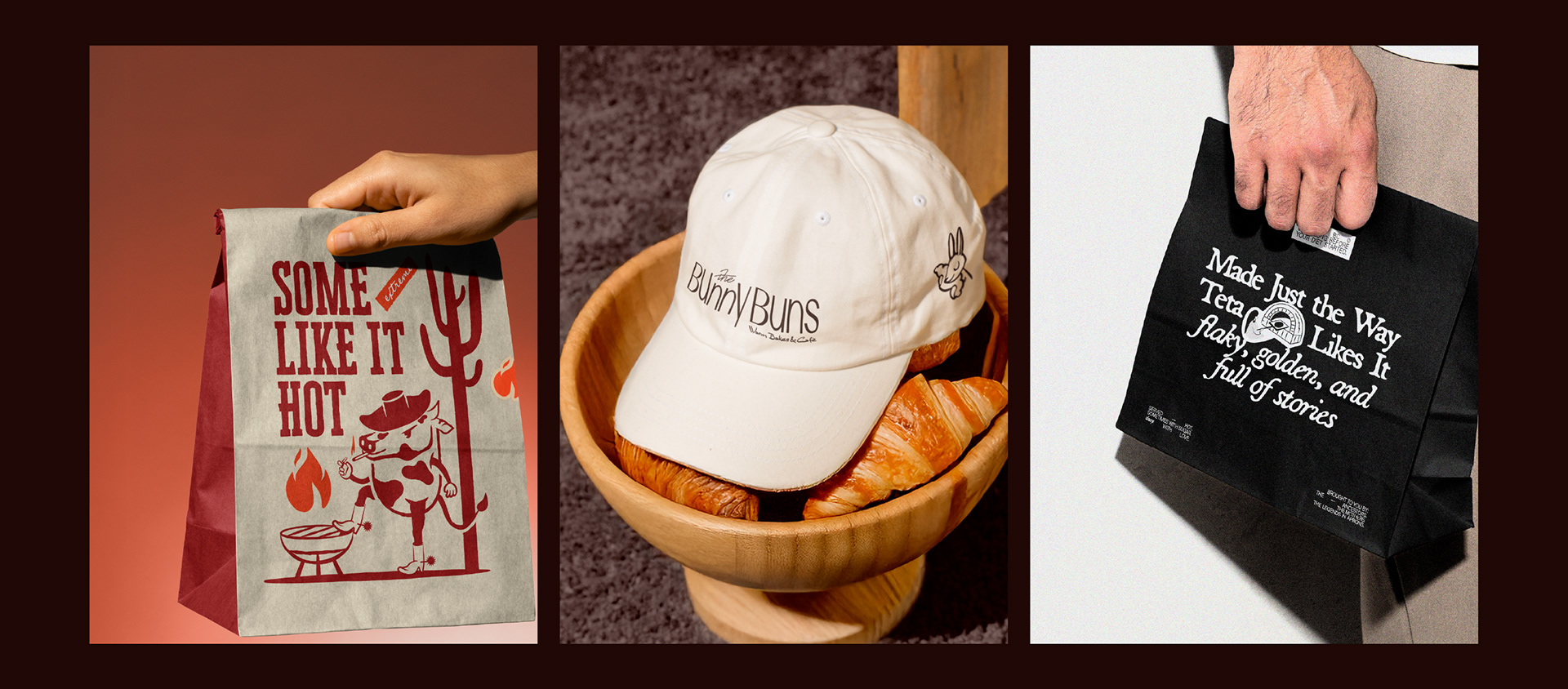 In this project are three completely different fictional brands — each one imagined, named, concepted, and visually crafted from scratch.